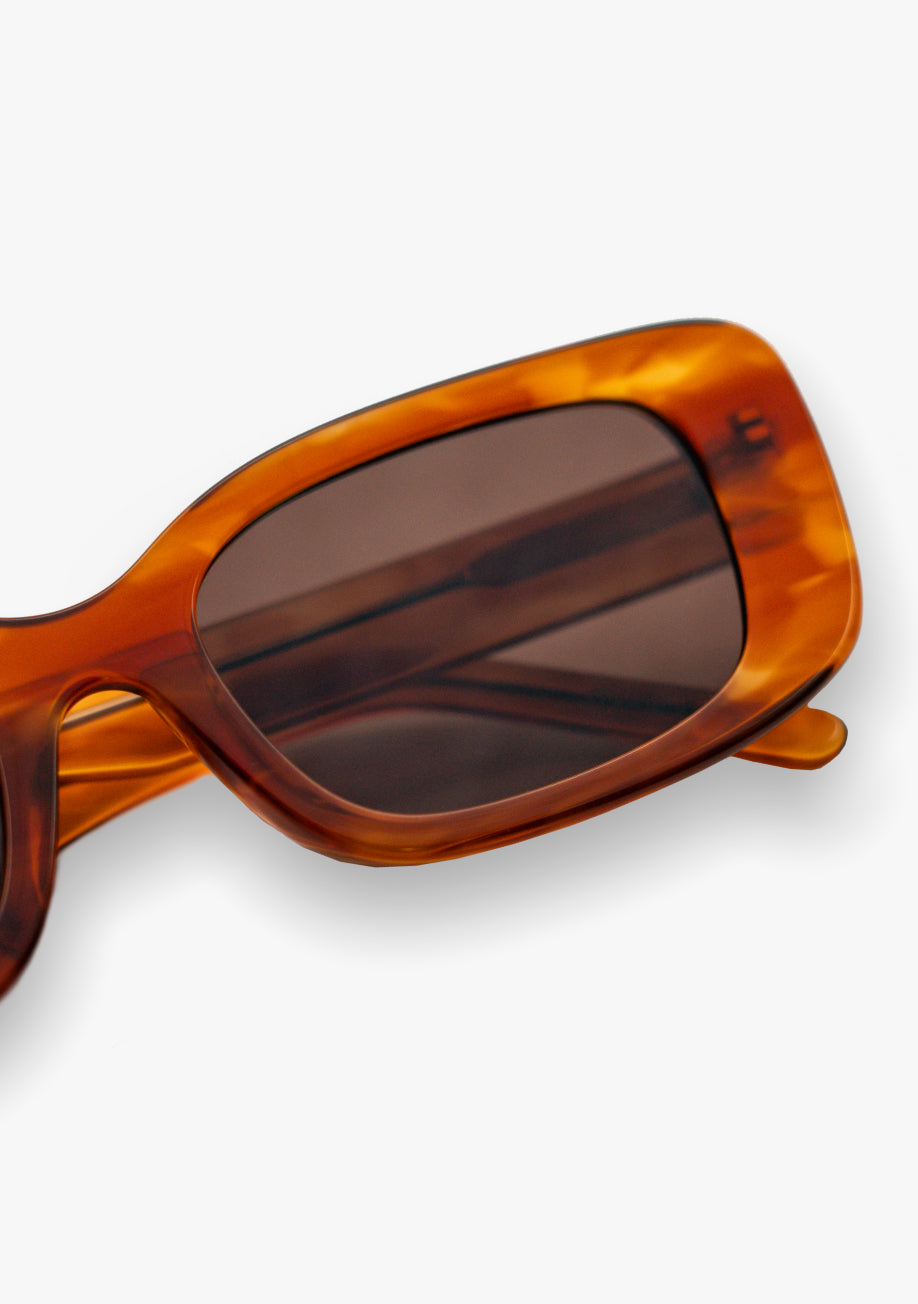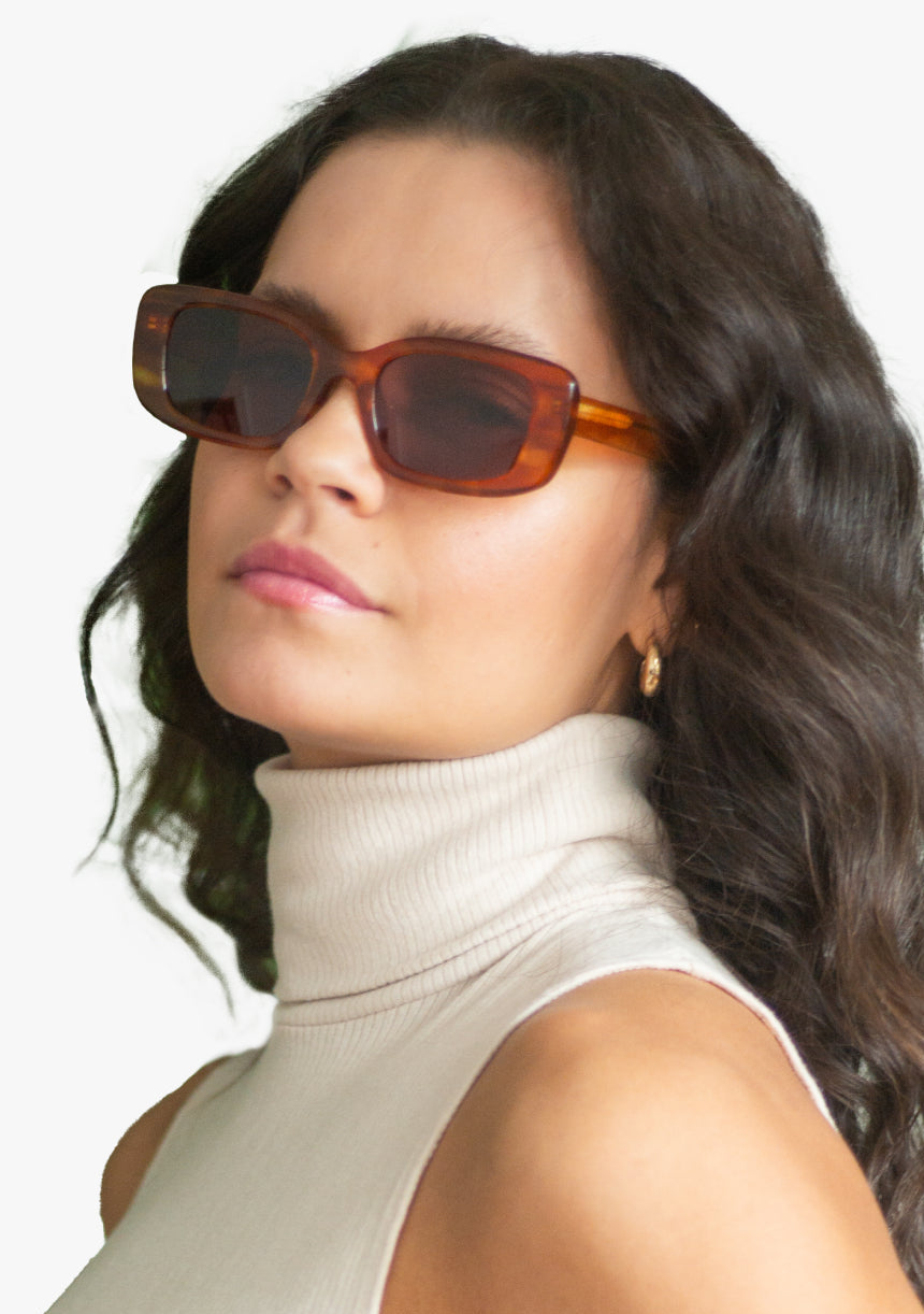 All frames are made with plant-based cellulose acetate, known for its durability, comfort, and reduced environmental impact. Packaging is composed of 100% recycled cardboard and linen.